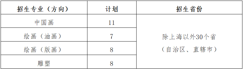 联考初选 + 复试(形式待定)校考专业:中国画、绘画(油画)、绘画(版画)、雕塑(上海考生走统考,全国其他省份这4个专业需校考)