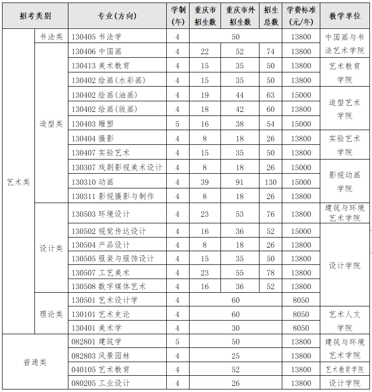 备注:艺术与科技、产品设计、新媒体艺术3个专业不组织校考,承认各省美术统考成绩。