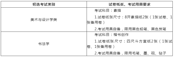 二、考试试卷纸张用具及其他材料准备要求其他材料:相关画具画材、四开画板、椅子、画架(素描考试用)、桌子(书法创作考试用)、两个手机支架、身份证、准考证、剪刀、胶棒、红色印泥、包装试卷工具等。