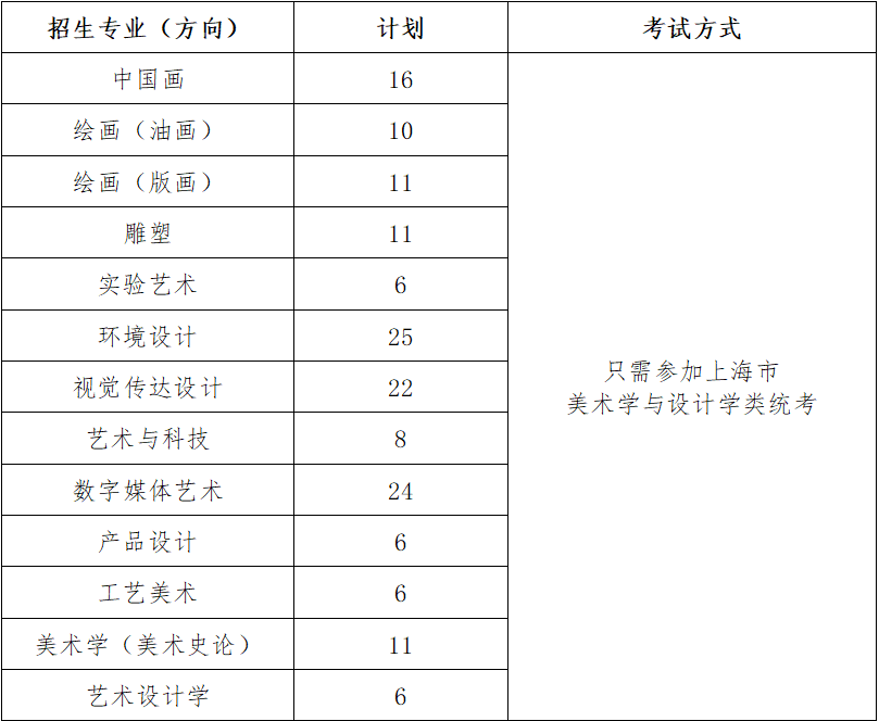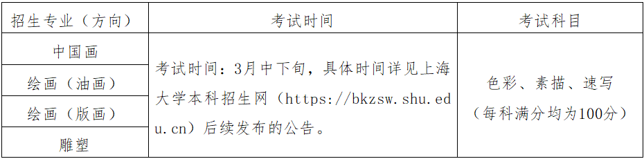 联考初选 + 复试(形式待定)校考专业:中国画、绘画(油画)、绘画(版画)、雕塑(上海考生走统考,全国其他省份这4个专业需校考)
