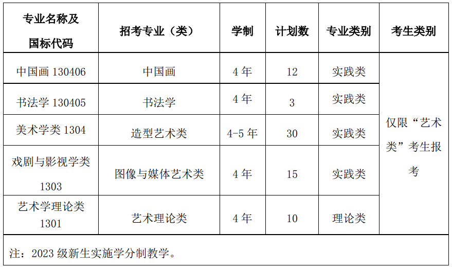 备注:艺术与科技、产品设计、新媒体艺术3个专业不组织校考,承认各省美术统考成绩。