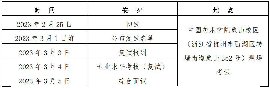 初选结果:将在2023年2月中下旬公布,初选未合格考生,学校将通过报名系统按考生缴费原路径退回报名考试费。复试时间:造型类3月4日、设计类3月5日考试方式:网络远程考试考试内容及具体安排: