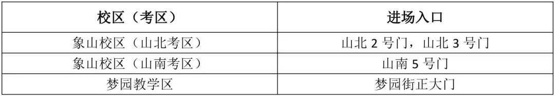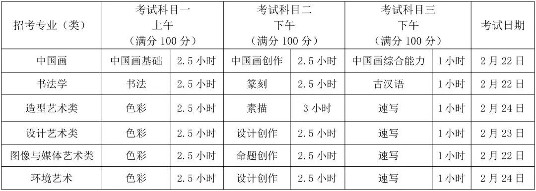 考试正式开始时间为上午8:30、下午13:30。造型艺术类专业考试结束时间下午17:50,其他各专业考试结束时间下午17:20 。考生需根据准考证显示的考场信息,关注周边交通情况,合理规划赴考路线,提前45分钟以上到校参加考试。进场入口请参照下表:1、考生考前需认真阅读《中国美术学院本科招生专业考试考场规则》(详见附件1)遵守考场纪律,服从监考人员指挥。2、考生凭准考证和二代身份证原件参加考试,考生只许携带考试需用的有关文具、画板(画架)进入考场。考生不得携带任何书籍、画册、资料、稿纸、带图文数字模板的功能尺、色卡和通讯工具或有存储、查询功能的电子用品(含手机、相机、智能手表)。画板(画架)上不准粘贴各种图案。3、开考15分钟后迟到考生不得进入考场;考试期间不得提前交卷离场。4、考生领取试卷后须仔细核对试卷粘贴的条形码号是否与准考证号一致,考生若遇试卷、试题分发错误、印刷字迹不清,可举手向监考人员询问。涉及试题内容的疑问,不得向监考人员询问。5、考试终了时间一到,考生应立即停笔,所有试卷、试题和草稿不得带离考场,否则按作弊处理。6、考试不得使用定画液(建议自带锂电池吹风机)。1、考生在考试期间须全程佩戴口罩。2、学校不提供餐饮服务,考生需自备干粮。3、未尽事宜请咨询招生办:0571-87164630。一、考前45分钟,考生凭《准考证》、有效身份证件进入考场,经监考人员核对照片无误后,抽签对号入座,并将证件固定在画板上以便监考人员核对。二、考生只许携带与考试需用的有关的文具、画板(画架)进入考场,不得携带任何书籍、画册、资料、稿纸、带图文数字模板的功能尺、色卡和通讯工具或有存储、查询功能的电子用品(含手机、相机、智能手表)。画板(画架)上不准粘贴各种图案。三、开考15分钟后迟到考生不得进入考场;考试期间考生不得提前交卷离场。四、遇试卷、试题分发错误、印刷字迹不清之处,可举手向监考人员询问。涉及试题内容的疑问,不得向监考人员询问。五、考场必须保持安静,考场内不准吸烟,不准交头接耳,不准换卷,不准揭撕、损坏、弄脏“准考证条形码”,不准在考场内拍照。试卷上面不得作任何标记,一经发现,试卷作废。六、考试终了时间一到,考生应立即停笔,将试卷、试题、草稿一并上交,经监考人员核查无误后,方可离场,试卷、试题和草稿不准带离考场。七、对不遵守考场规则,不服从考试工作人员管理、有违纪、作弊等行为的,按照《国家教育考试违规处理办法》有关规定作出处理,情节严重者上报各省考试院做进一步的处理。